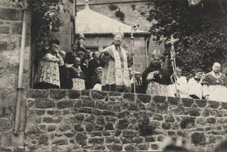 5. The apostolic nuncio to France, Blessed Angelo Roncalli, under the watchful eye of my predecesor's predecesor as master of ceremonies, arrives to sing pontifical Mass in the ruins of the gothic abbey church during the triduum of celebrations for the 13th centenary of the foundation of the monastery, July 1949.